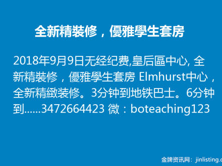 无经纪费,皇后區中心, 全新精裝修,優雅學生套房3472664423