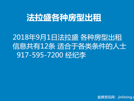 法拉盛 各种房型出租 12条 917-595-7200