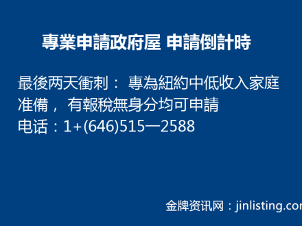 專業申請政府屋 申請倒計時 最後两天衝刺:1+(646)515一2588