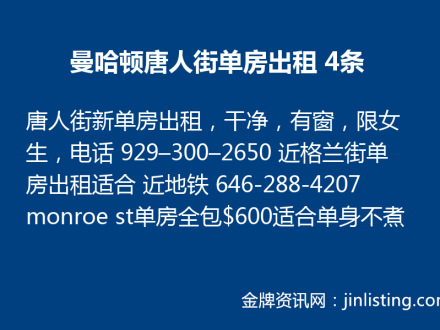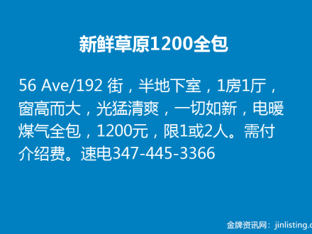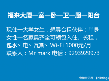 福来大厦(近凯西娜和缅街)一室一卧一卫一厨一阳台(大楼有24小时doorman ),1000元/月