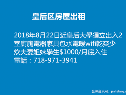 法拉盛中心高级公寓,两房一厅(日租) 917-517-7871