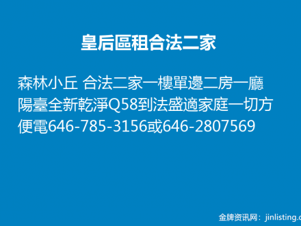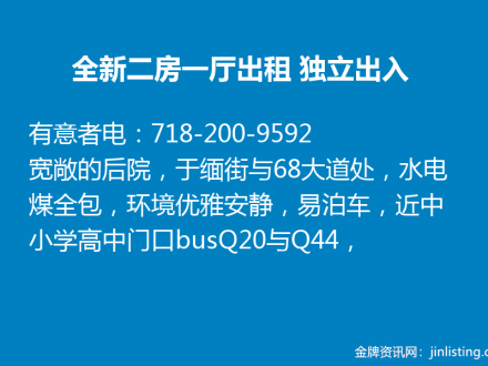 全新二房一厅出租,随时入住,独立出入,电:718-200-9592