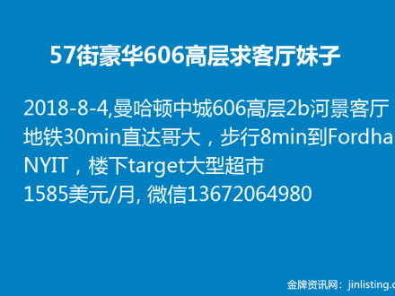 57街豪华606高层求客厅妹子!只要1585 13672064980