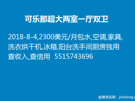 可乐那超大两室一厅双卫,月租2300 5515743696