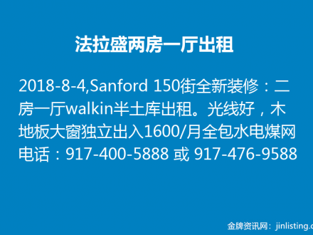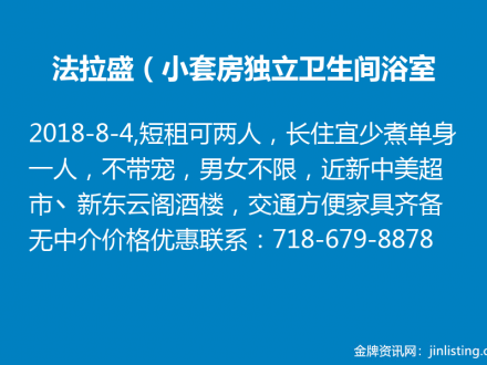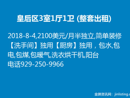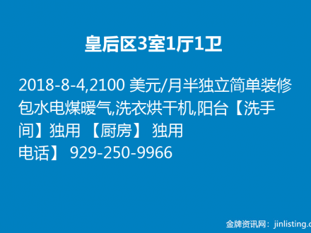 皇后区1房/2房/3房 出租有7条信息 3473500059