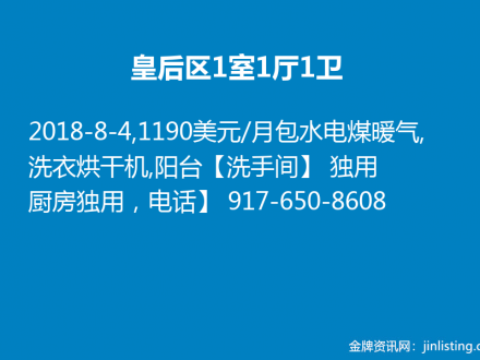 皇后区1室1厅1卫 (整套出租) 917-650-8608 无代理费