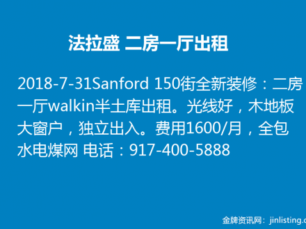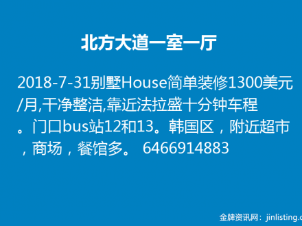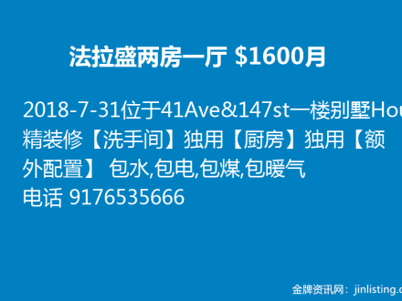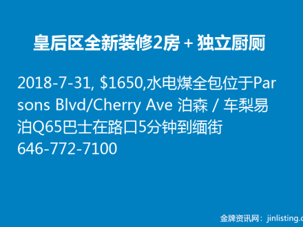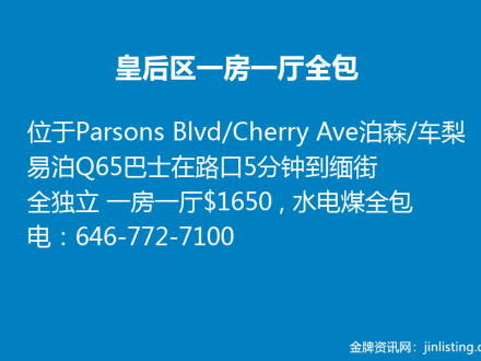 皇后区一房一厅全包 $1650 电:646-772-7100