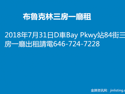 布魯克林 三房一廳租 646-724-7228
