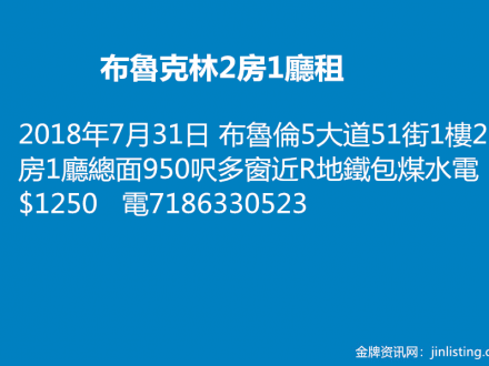 布魯克林2房1廳租 7186330523