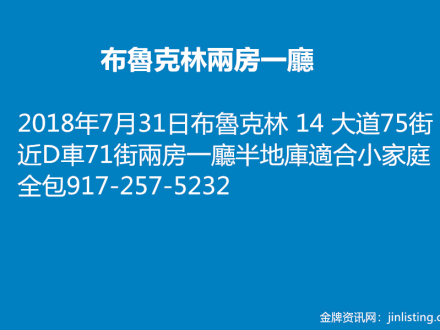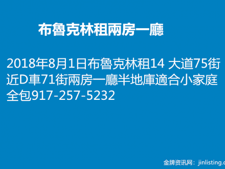 布魯克林租兩房一廳 917-257-5232