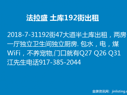法拉盛 土库192街出租 917-385-2044