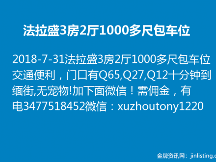 法拉盛3房2厅1000多尺包车位租$2300