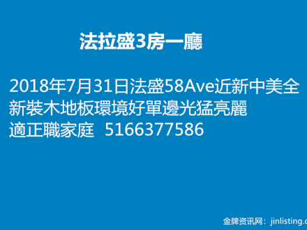 法拉盛3房一廳 5166377586