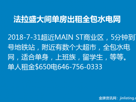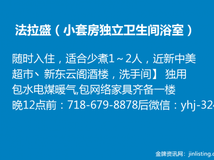 法拉盛单房出租 汇总