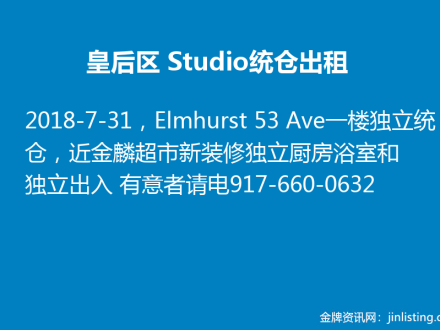 皇后区 Studio统仓出租 917-660-0632