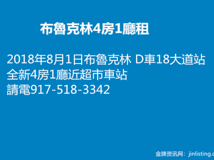 布魯克林4房1廳租 917-518-3342