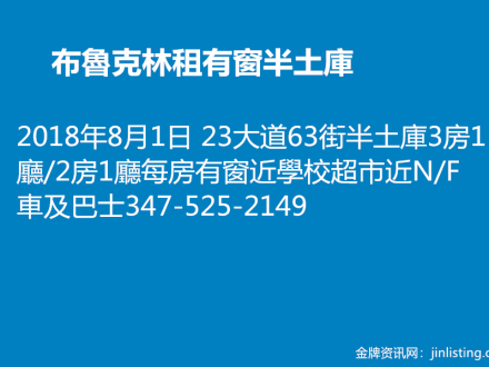 布魯克林租有窗半土庫 347-525-2149