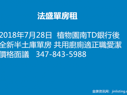 法拉盛近金城发超市 Georgia Rd半土库明亮有窗大单房$450,646-7072335