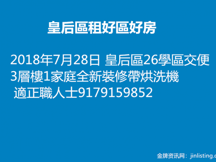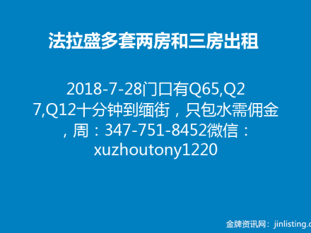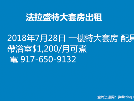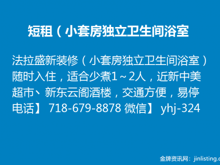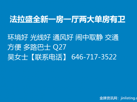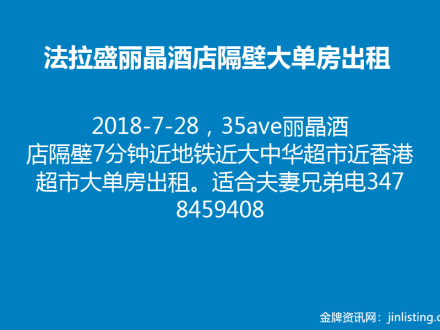 法拉盛35ave 丽晶酒店隔壁大单房出租
