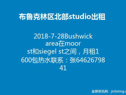 在moor st 和siegel st之间studio 出租,超低价1600每月