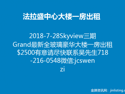 Skyview三期Grand法拉盛中心最新全玻璃豪华大楼一房出租$2500