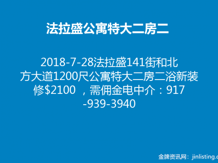 法拉盛141街和北方大道公寓特大二房二浴新装修