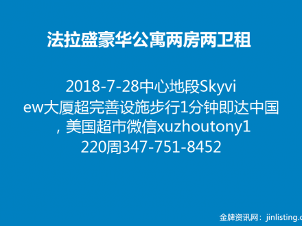 法拉盛中心地段Skyview 豪华公寓两房两卫租$2800