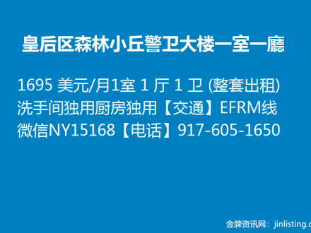 Forest Hills近EFRM地铁电梯警卫大楼一室一廳$1695