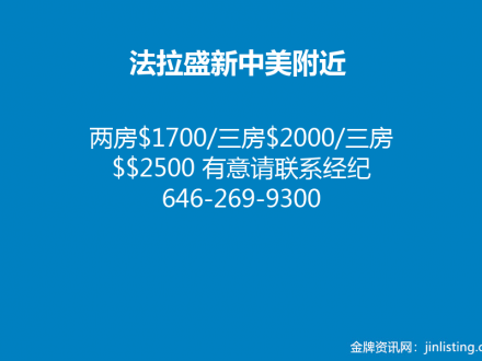 法拉盛新中美附近两房$1700/三房$2000/三房$$2500