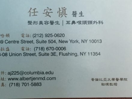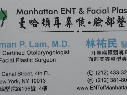 林祐民 医生 (212) 433-3223 曼哈顿耳鼻喉 脸部整容