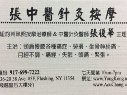 张中医针灸按摩(張中醫針灸按摩) 电话: 917-699-7222