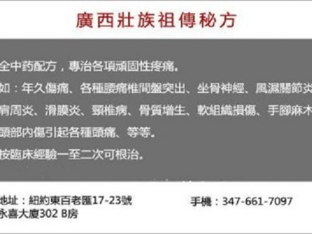 雷增光&李麗容中醫診所 Pain Relief Herbs Center Inc 电话:(212)226-3631