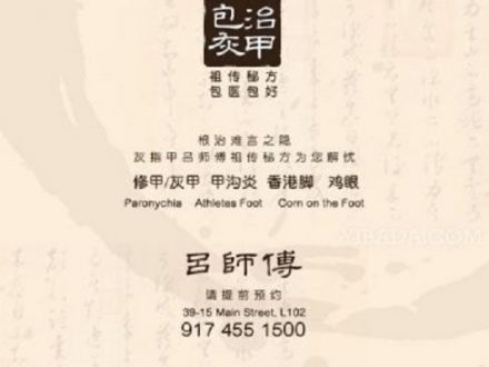 紐約治灰指甲-呂師傅包治灰甲 New York Nail Fungus Treatment (917)455-1500