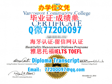做VCC毕业证书Q/微:77200097办理温哥华社区学院毕业证书有VCC学位证书精仿VCC文凭证书能办VCC成绩单制作温哥华社区学院文凭证书offer雅思托福Vancouver Community College Diploma Degr...