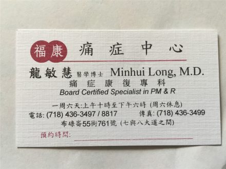 龙敏慧 (七大道痛症康复中心) 718-436-3497