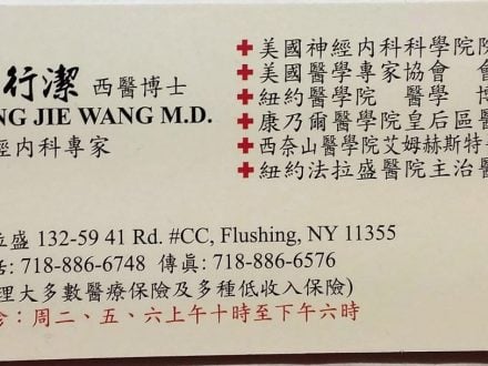 神經內科/神经麻痹/王行潔 西醫博士-王行洁 西医博士-718-886-6748