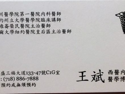 西醫法拉盛/西醫内科/王斌醫學博士/西医法拉盛/西医内科/王斌医学博士-(718) 886-7888