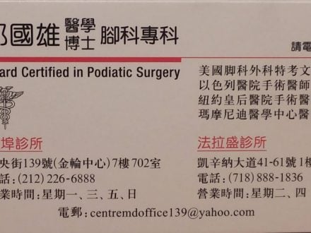 鄒國雄醫學博士腳科專科-邹国雄医学博士脚科专科-(212) 226-6888