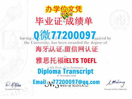 今年国外毕业证成绩单UWS毕业证成绩单Q/微:77200097办理西苏格兰大学毕业证书有UWS学位证书精仿UWS文凭证书能办UWS成绩单制作西苏格兰大学文凭证书雅思托福University of the West of Scotland D...