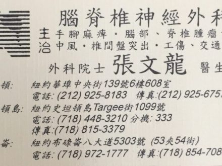 腦脊椎神經外科: 張文龍醫生(212)925~8183