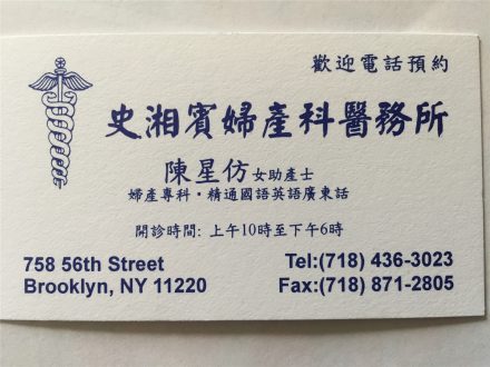 史湘宾妇产科医务所(718) 436-3023陳星仿女助產士