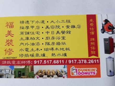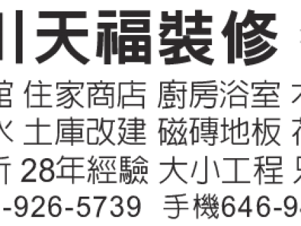 四川 天福裝修 政府註冊 百萬保險 718-926-5739 646-948-6666