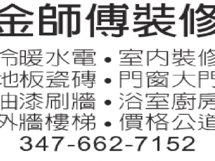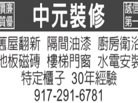 价廉质优 中元裝修 诚信第一 917-291-6781
