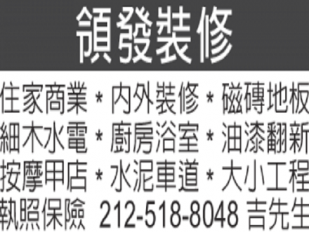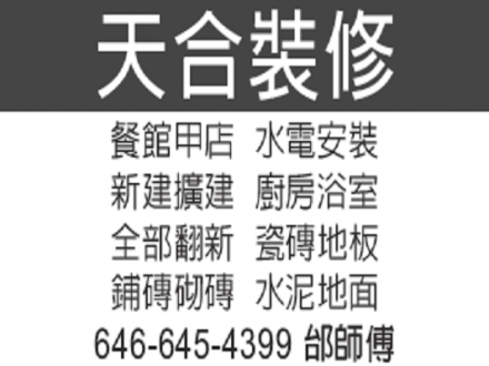 四川 天福裝修 政府註冊 百萬保險 718-926-5739 646-948-6666