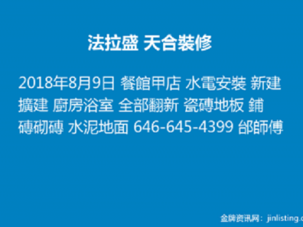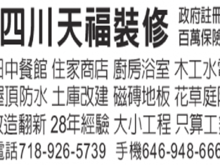 四川 天福裝修 政府註冊 百萬保險 718-926-5739 646-948-6666