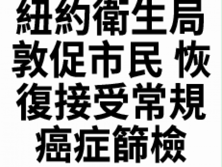 紐約衛生局敦促市民 恢復接受常規癌症篩檢