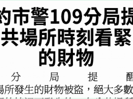紐約市警109分局提醒 在公共場所時刻看緊自己的財物