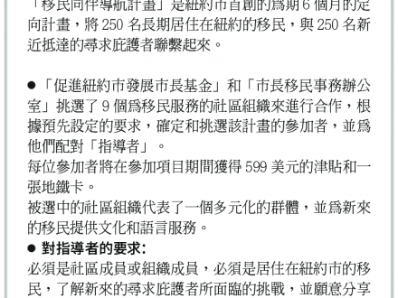 紐約市「移民同伴導航」計畫