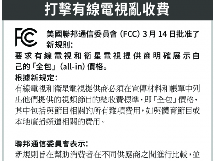 美聯邦通信委員會新規 打擊有線電視亂收費