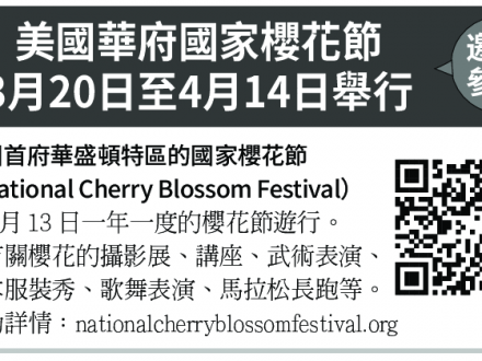 美國華府國家櫻花節 3月20日至4月14日舉行